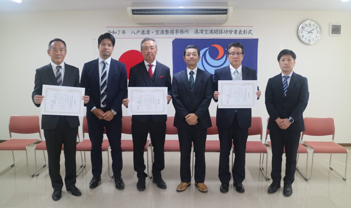 令和7年8月26日(火)、八戸港湾・空港整備事務所にて開催された「令和7年 八戸港湾・空港関係功労者表彰式」において、当社が携わった「三沢空港駐車場実施設計」が優良業務として表彰されました。