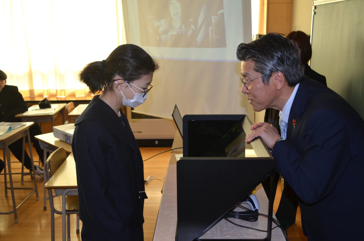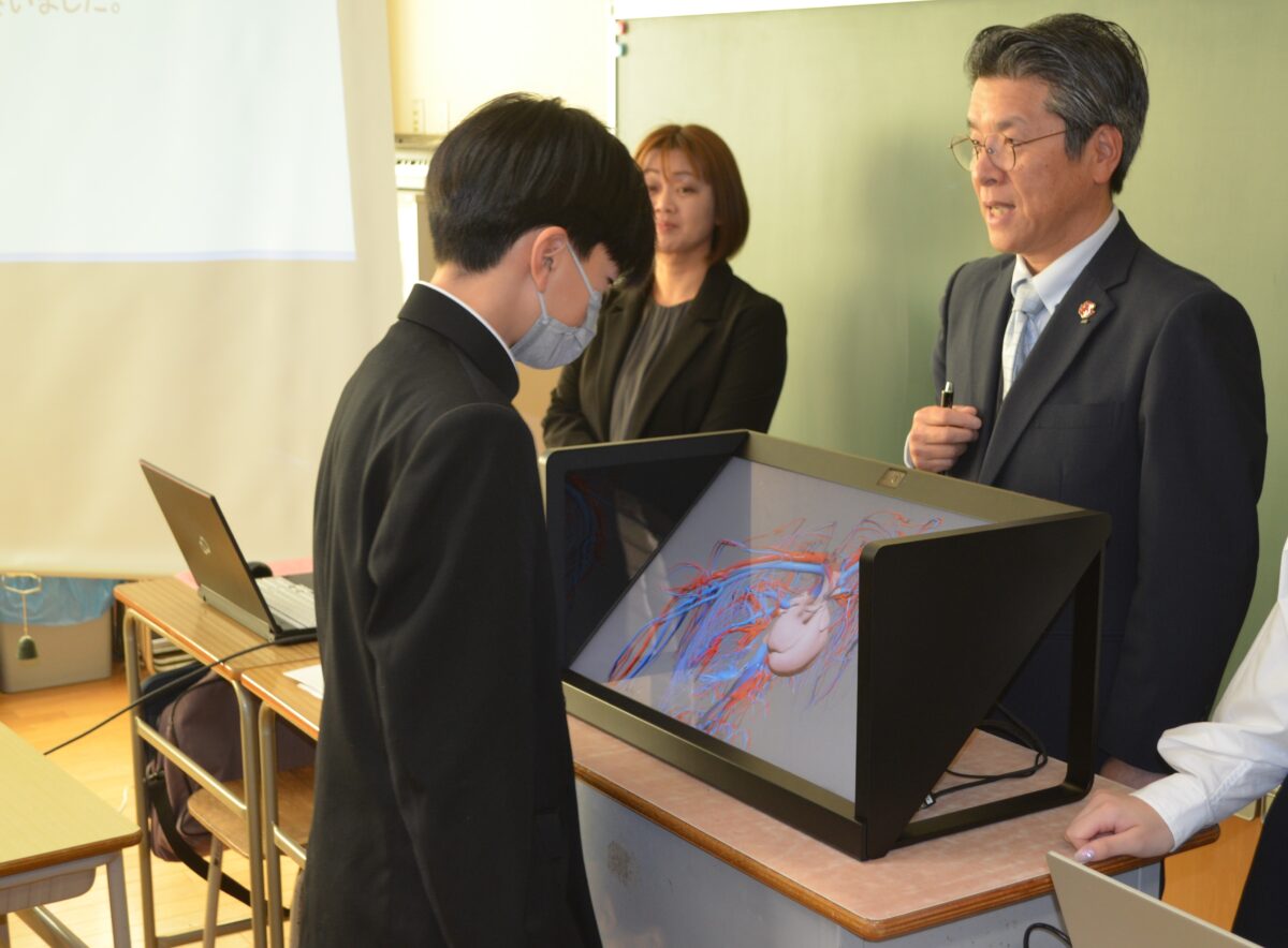 当社の講話では、会社紹介に加え、ソニー3D空間ディスプレイによる3D体験を実施しました。生徒の皆さんは熱心にメモを取りながら説明を聞き、3D映像を体験した際には驚きと興味の表情を見せていました。講話を通じて、仕事への関心を高めていただく良い機会となりました。